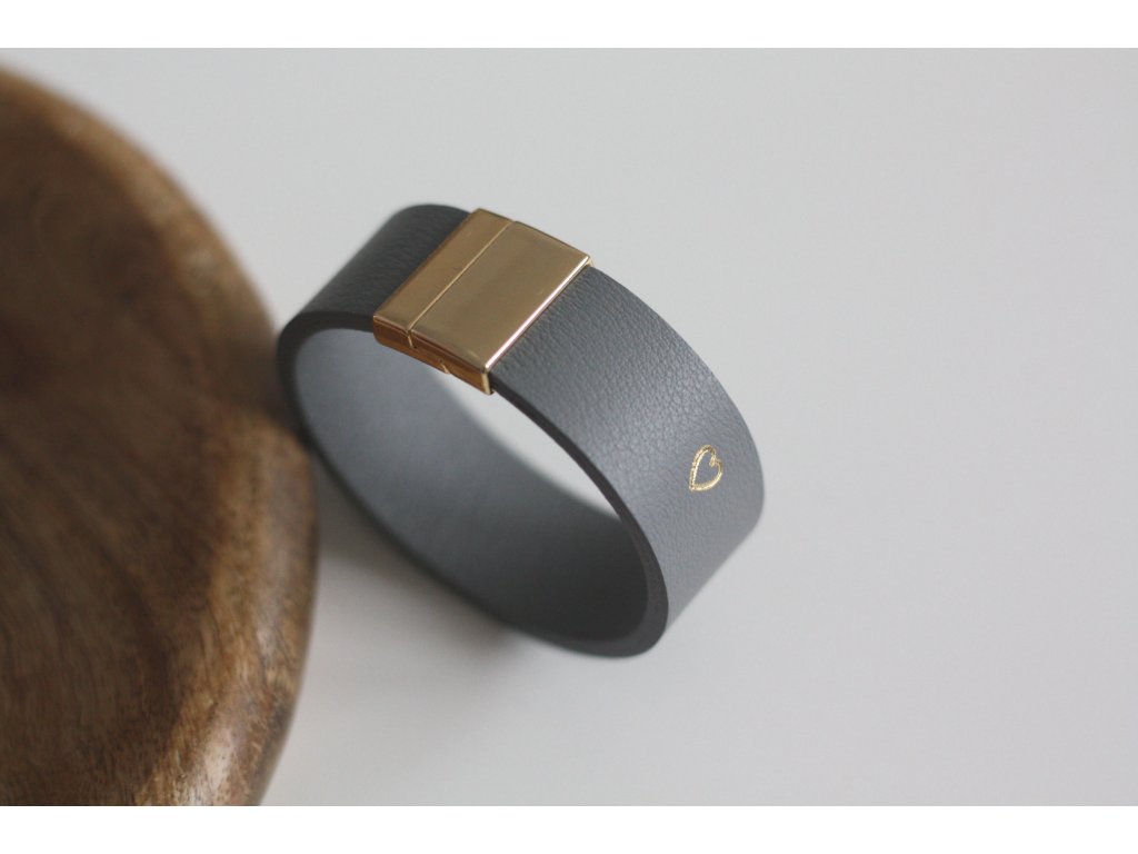 Kožený náramok 2cm LÁSKA- sivá