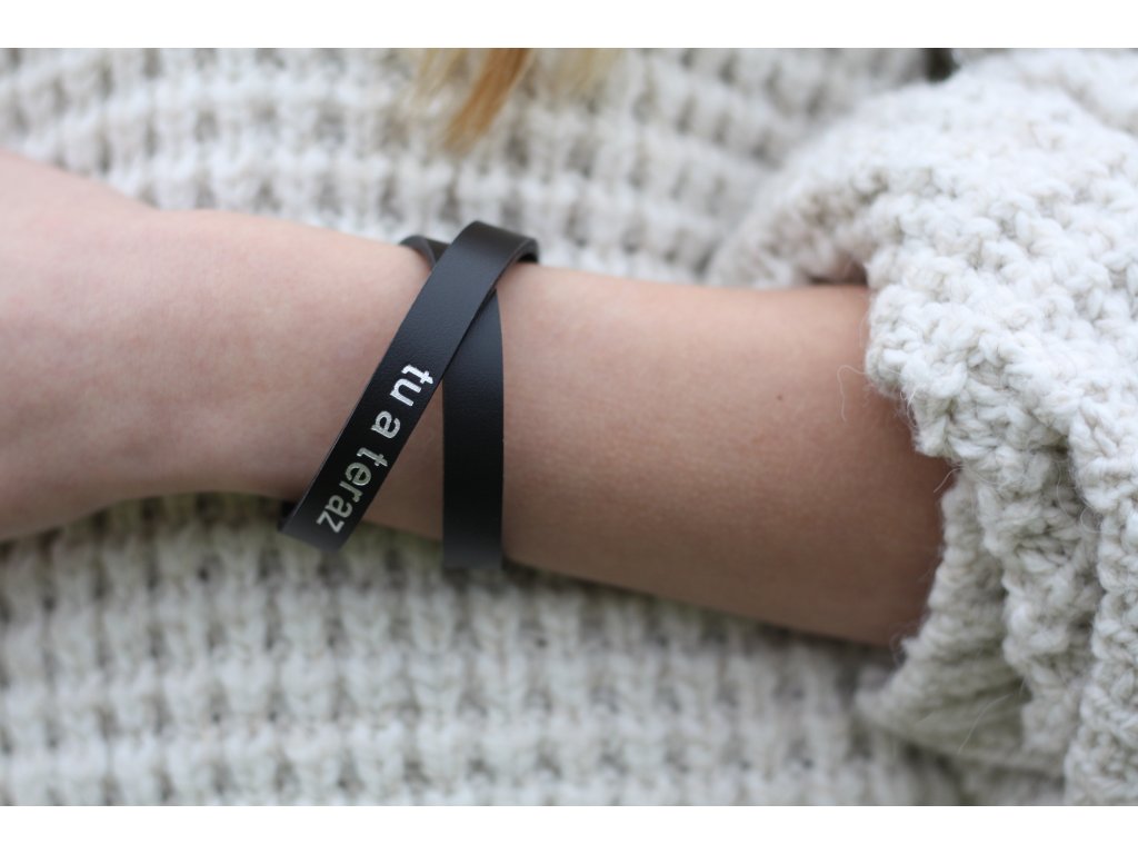 Každé slovo, ktoré nesie tento náramok, má svoj príbeh – vyrazený do kože, aby pretrval.