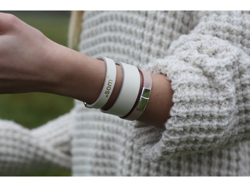 Personalizovaný kožený náramok 2cm basic-slonovinová kosť