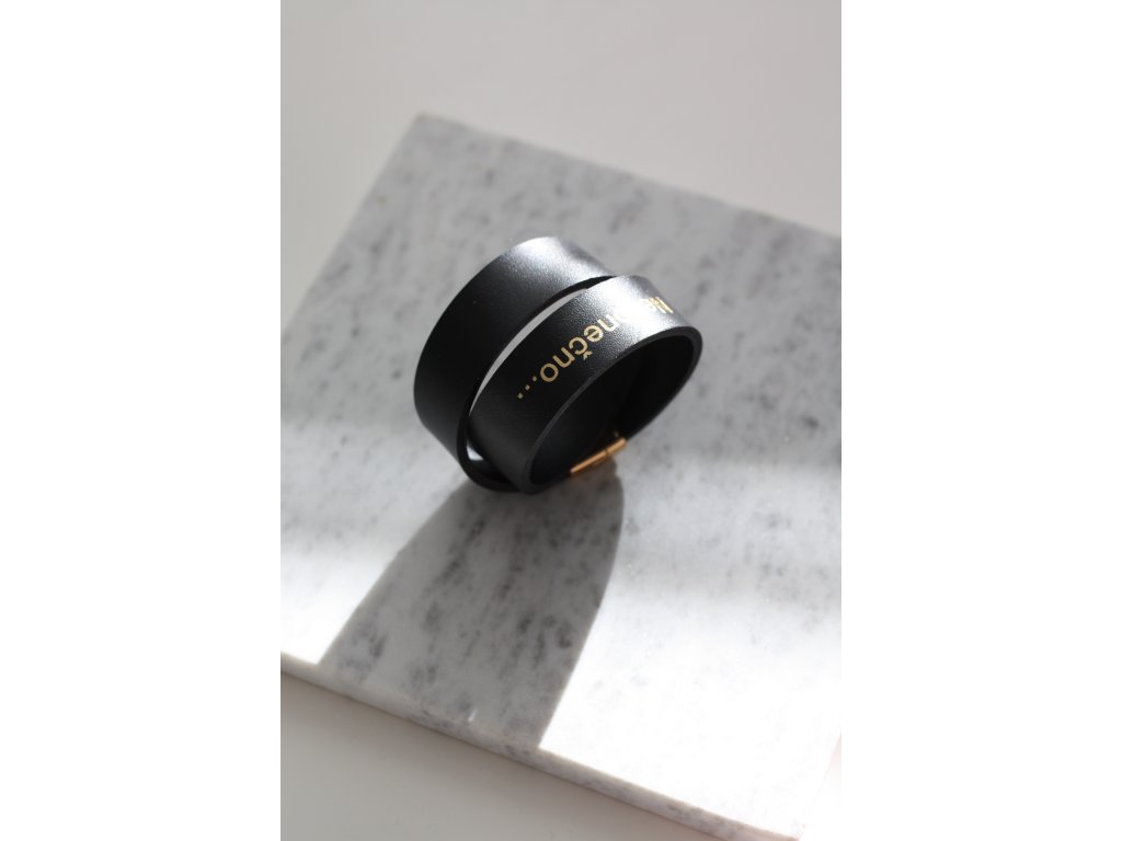 Náramok z pravej usne, dodávanej z Toskánska . Každý kus je originál – text je do kože ručne vyrazený s precíznosťou a citom pre detail. Možnosť výberu textu a kovania v zlatej alebo striebornej farbe.